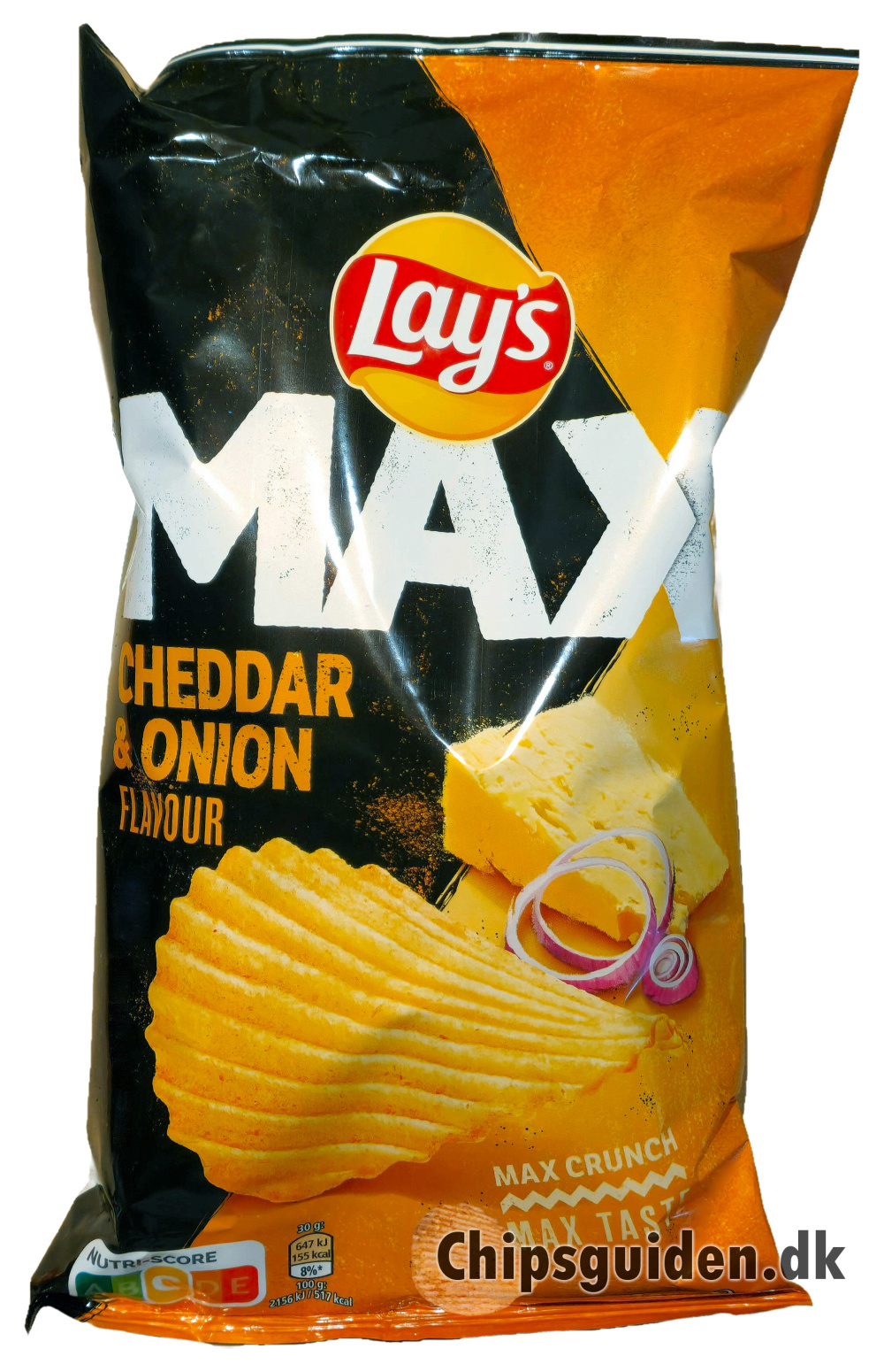 Producent: Lay's Produkt: MAX Cheddar & Onion Flavour Købt i Rema 1000 for ca. 12 kr. Vægt: 185 g (64.86 kr/kg) Stregkode: 8710398524232 |
