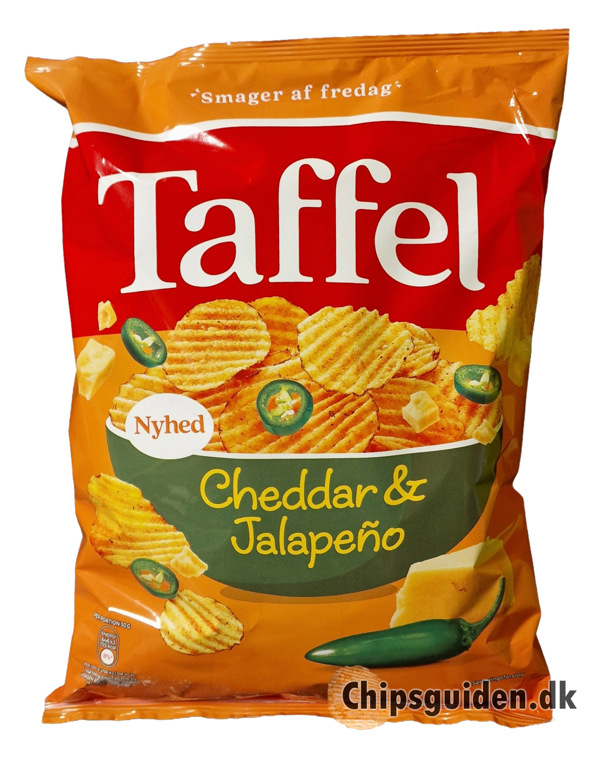 Producent: Taffel Produkt: Cheddar & Jalapeño Købt i Bilka for ca. 11 kr. Vægt: 175 g (62.86 kr/kg) Stregkode: 7310532306130 |
